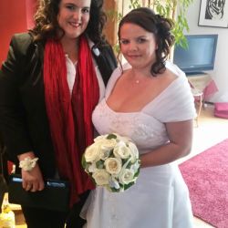 Die Braut empfing mich schon mit einem strahlenden Lächeln und einem warmen Kaffee, herrlich. Da kann ja nichst mehr schief gehen. Mit relativ kurzen Haaren lässt sich Einiges anstellen und auch die Trauzeugin konnte sich erfreuen, was man mit ihren Haaren machen kann. Dankeschön für die schönen Bilder, von Fotograf Jörg Kampers; Herzens-Bilder.de, und vor allem für den unvergesslichen losgelösten Morgen!