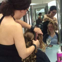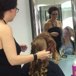 Es ist immer wieder schön die Braut im Kreise ihrer Trauzeugin und der besten Freundinnen zu stylen. Die Braut ist ruhig, entspannt und abgelenkt. Ihr wird jeder Wunsch von den Lippen abgelesen. Nacheinander werden die Mädels gestylt, MakeUp und Frisuren; natürlich immer mit dem Hauptaugenmerk auf der Braut. Es gibt keinen besseren Start in den Hochzeitstag.