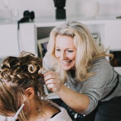 Es ist immer mal wieder schön, einen Fotografen an Bord zu haben, so dass auch ich beim Styling auf Fotos festgehalten werde. Somit kann ich euch auch einmal mich in Aktion präsentieren. Manchmal fange ich samstags recht zeitig bei den Bräuten daheim oder im Hotel an, sechs Uhr aufstehen in der Hauptsaison ist da gar nichts. Aber ich mache das unfassbar gerne für meine Bräute. Das Gefühl sie in den siebten Himmel zu stylen ist einzigartig. Für jede Lady speziell. Und wie ihr seht, es ist immer Spaß an der Tagesordnung, ganz wichtig. Ich danke jeder Einzelnen!